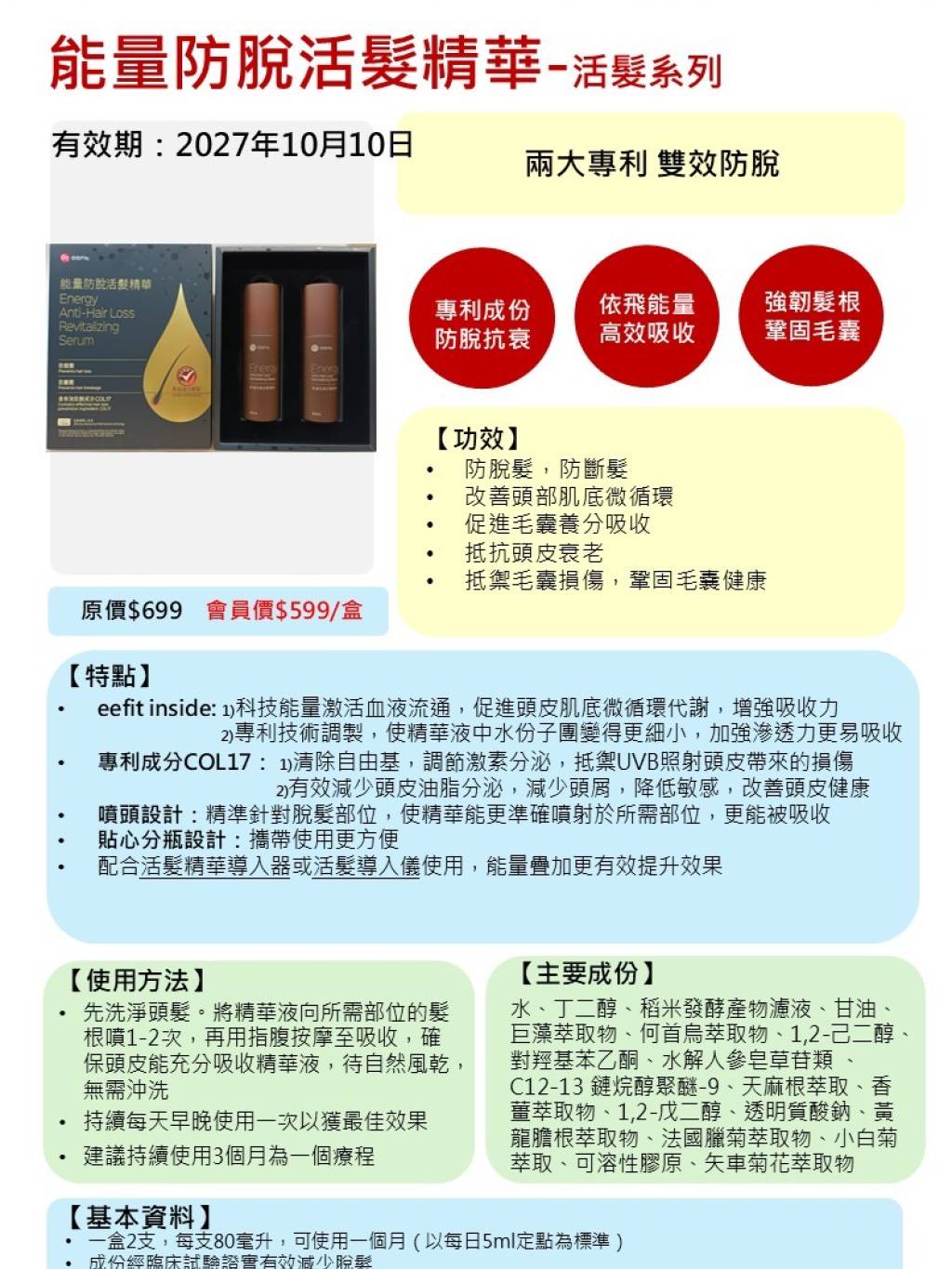 EF7 💖能量防脫活髮精華+活髮導入儀 1/10