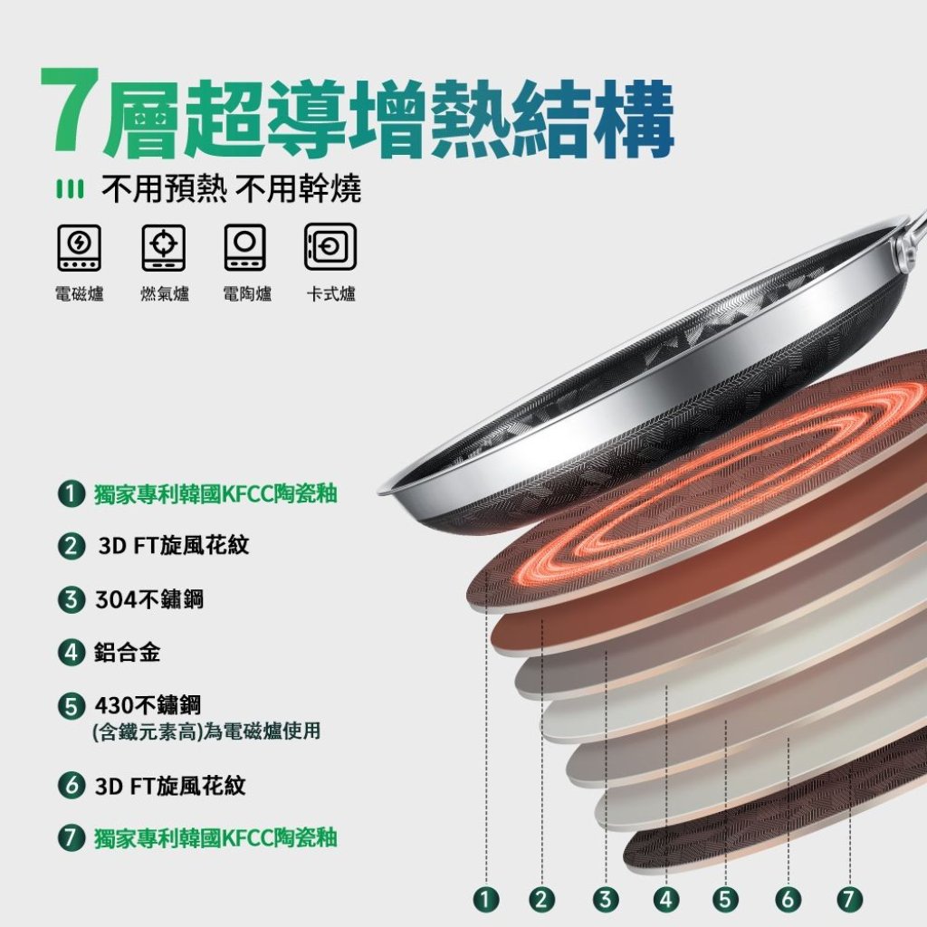 可⽤於電磁爐、電陶爐、明⽕爐等多種爐具,煎炒烹飪隨⼼所欲;