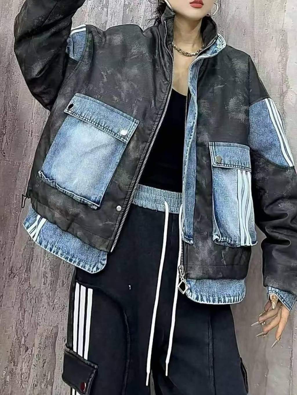DW4👚牛仔拼接外套