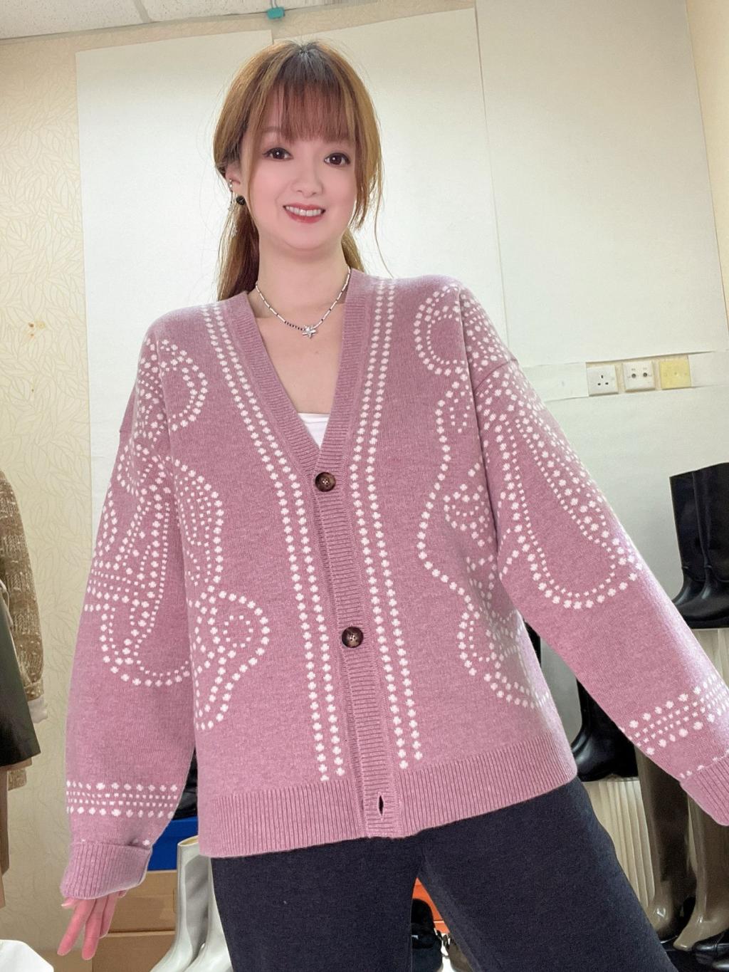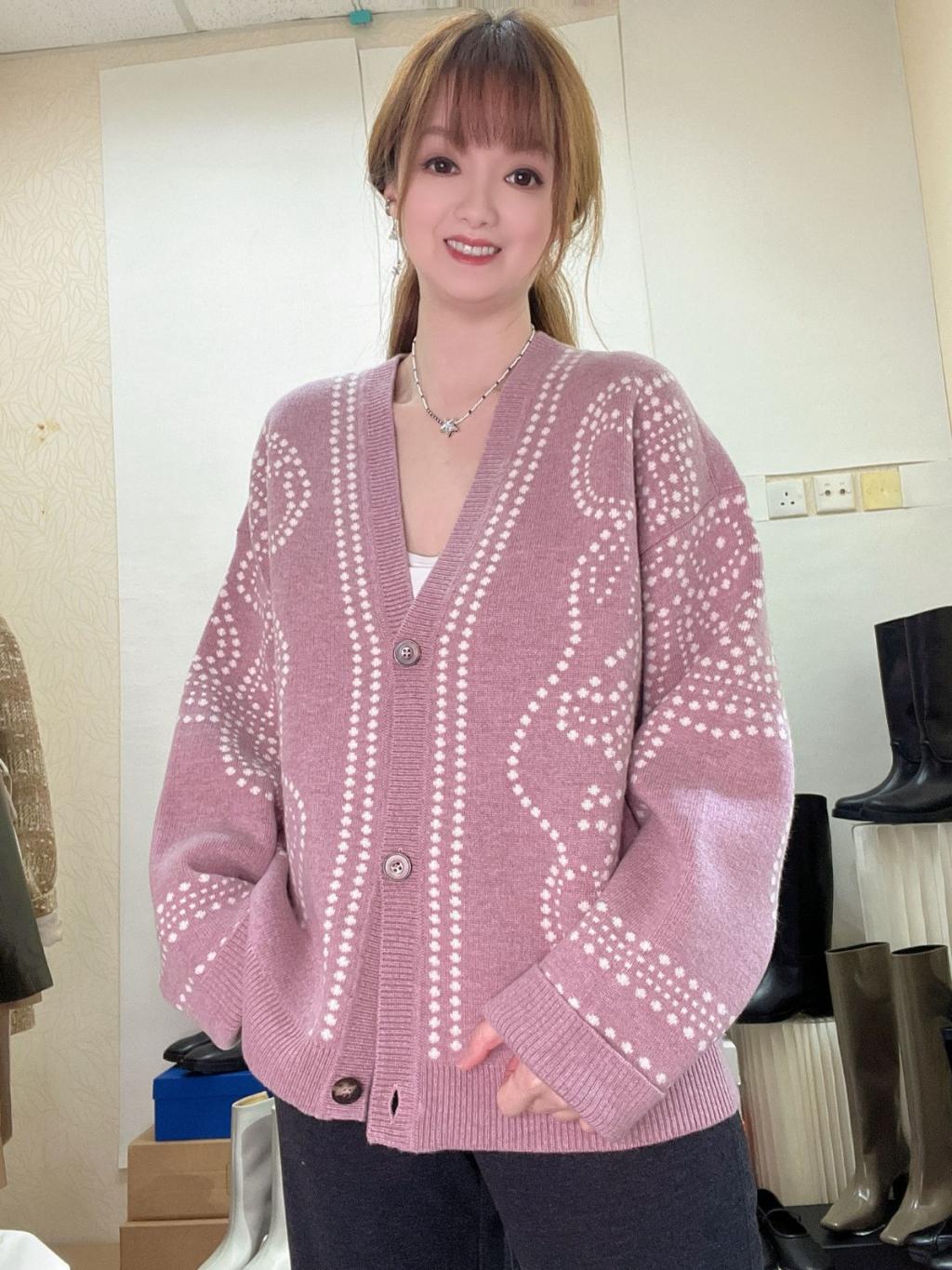 主頁 CD3💖藕粉色拼白色粒粒圖案外套