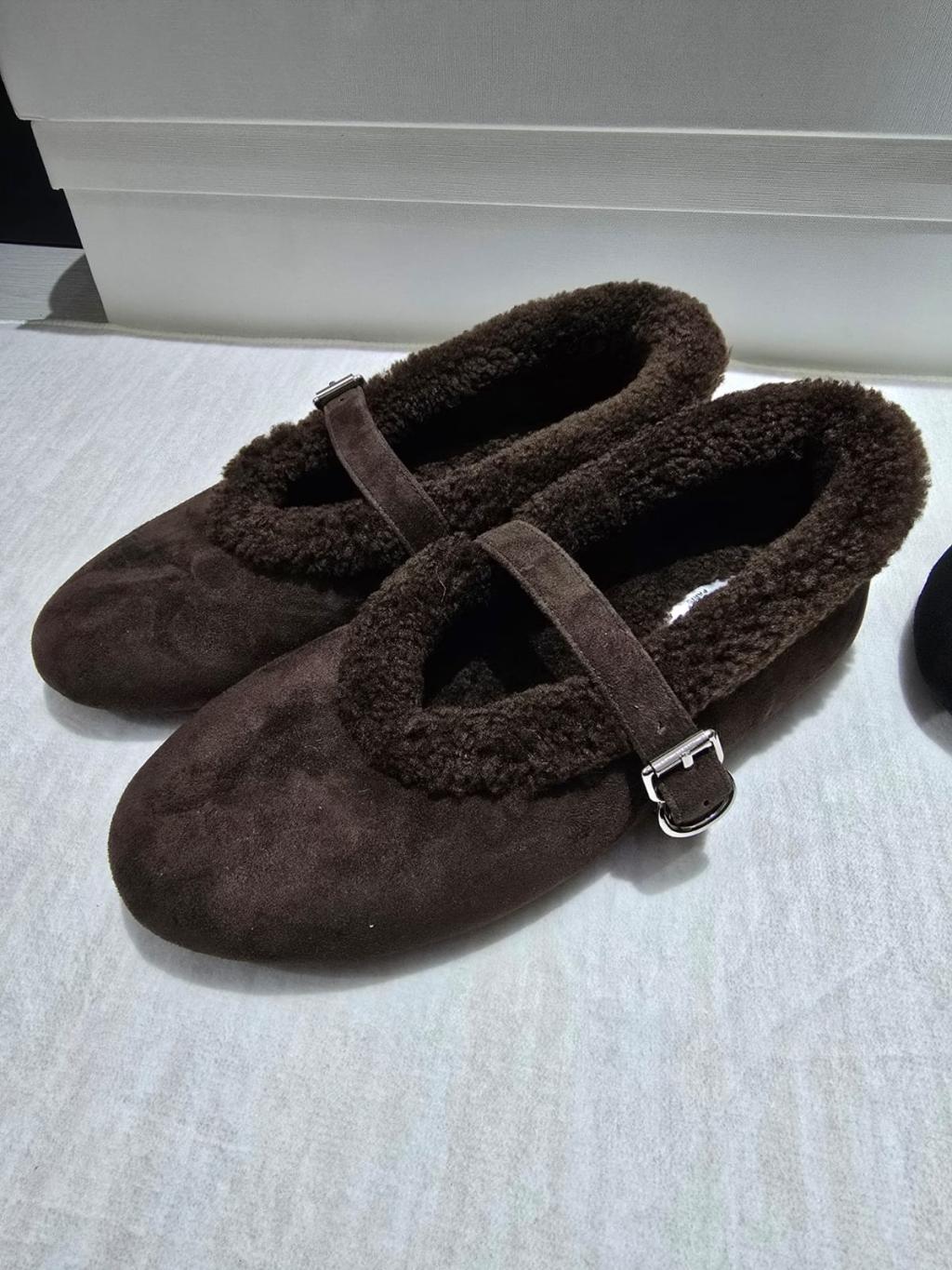 OB14👢啡色毛毛平底鞋